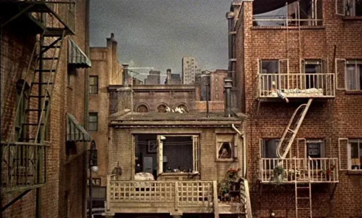 《后窗》的可用资金更为宽裕,领有一栋10万好意思元的培育——38英尺宽、185英尺长、40英尺高——包括杰弗瑞的起居室(这亦然杰弗瑞的套间中咱们能看到的独一部分)和起居室外的院子。两栋培育间还有一小段东谈主行谈和小径,在这以外还有一间酒吧,惟有在杰弗瑞提起他的长焦镜头紧跟离开公寓的「寂寥芳心姑娘」时才看获取。