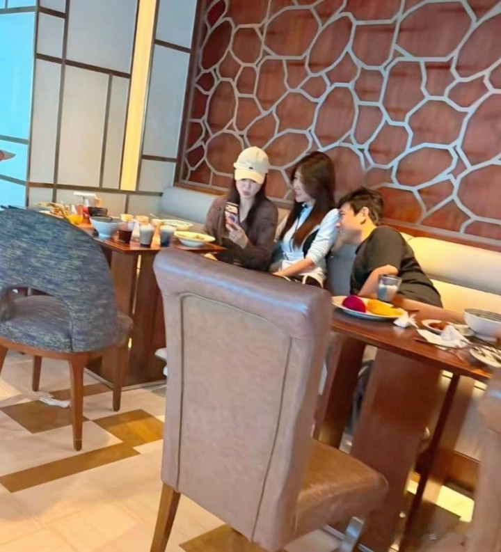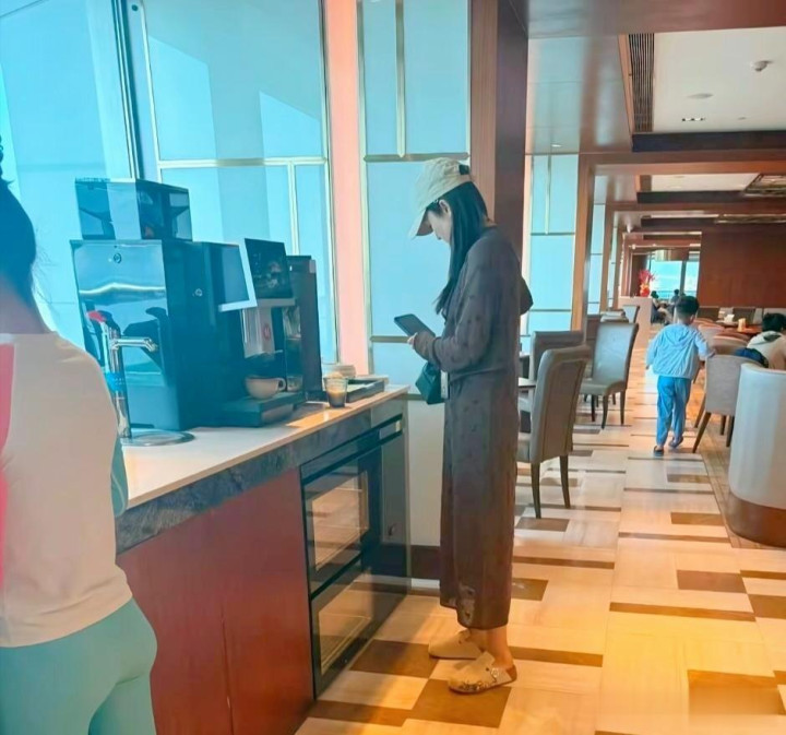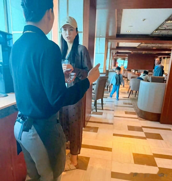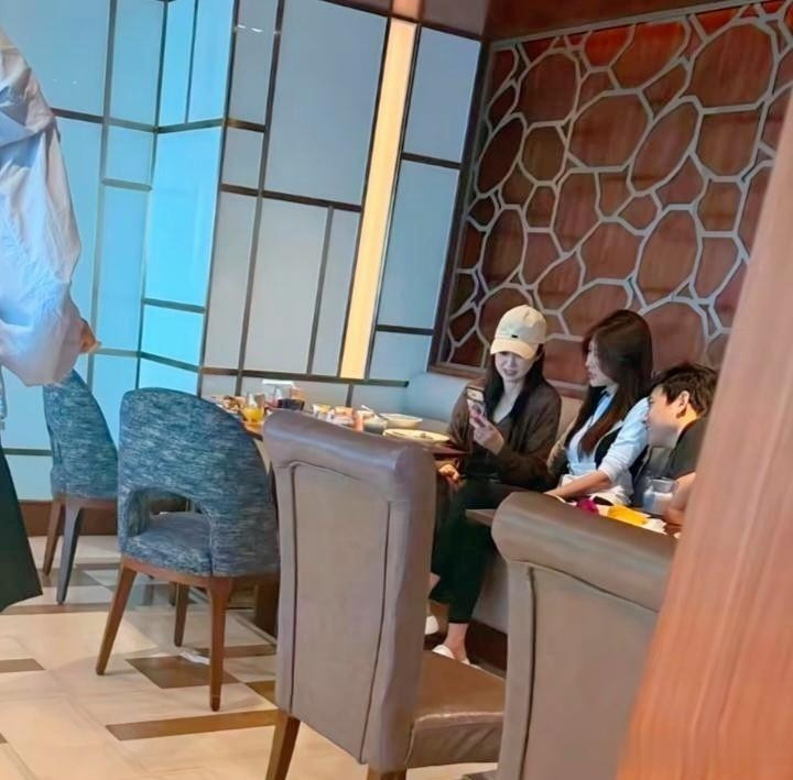 leyu 董璇在海南三亚旅店吃大餐被偶遇, 她穿戴连衣裙, 看起来好年青。