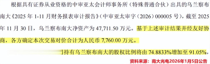 2026年1月5日,南大光电秘书增资7760万元,将子公司“乌兰察布南大”的合手股比例擢升至91.05%。